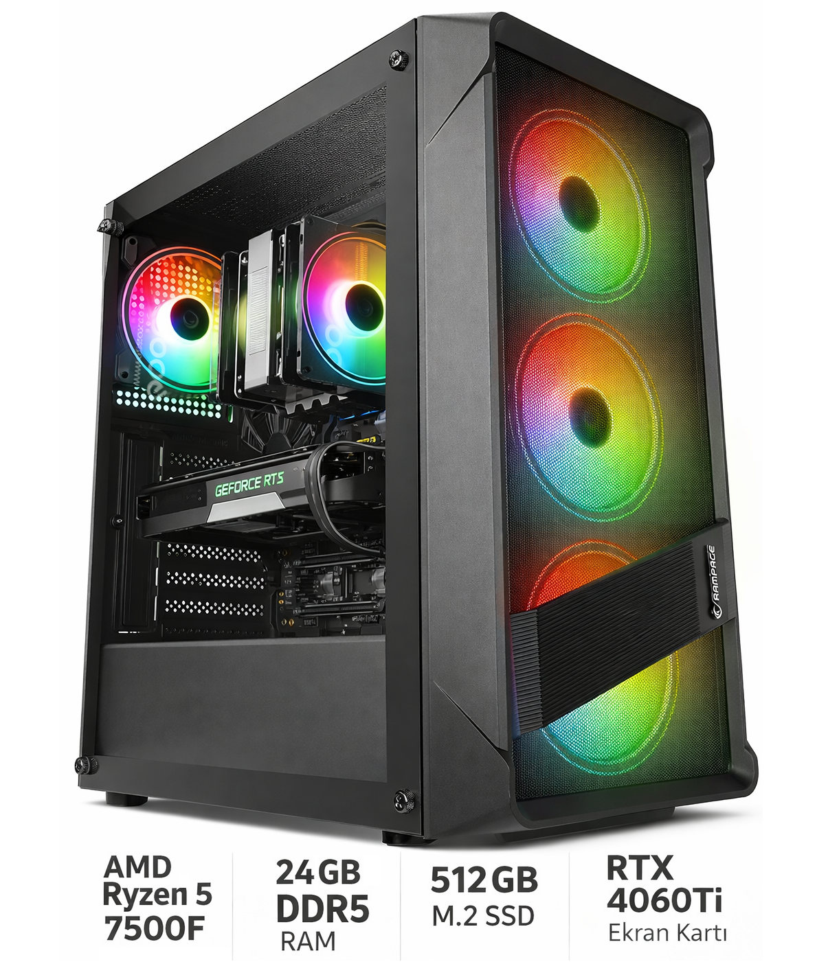 AMD Ryzen 5 7500F 24 GB DDR5 RTX 4060 TI-8GB 500GB M2 SSD Gaming Kasa * İndirimli Ürün