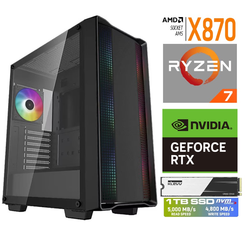 AMD RYZEN 7 8700F 24GB DDR5 RAM X870-PRO RTX 5070 1TB X4 M.2 SSD GAMING KASA